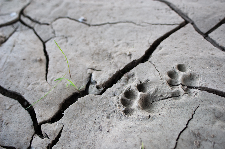 水位が下がった川岸で見つけた足跡。